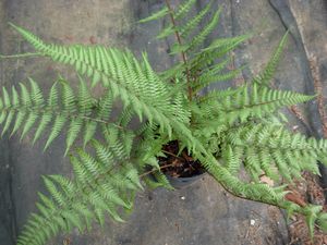 This hybrid fern will bring a silver accent to your shady garden. It is a cross between Lady Fern and Japanese Painted Fern that originated in cultivation. It is a hardy fern and a strong grower.