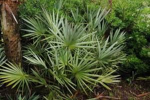 Saw Palmetto is a small fan-leaf palm that is common in the pinelands of the Deep South. It grows in full sun to light shade and is well adapted to warmer areas of the Southeastern United States.