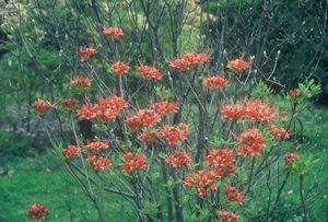 A brilliant dark orange-red selection of Rhododendron flammeum (which see). A Woodlanders'introduction selected by George Mitchell. .