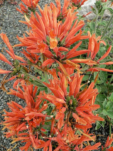 Dicliptera suberecta is a mounding perennial subshrub with soft, velvety grey foliage and vivid tubular red-orange flowers. Its form makes it well-suited for borders and perennial garden beds in warm climates.