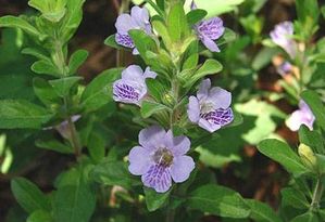 Dyschoriste oblongifolia is a low-growing perennial with small, narrow leaves and upright stems. It produces soft blue flowers during warm seasons and grows in sandy, dry soils.