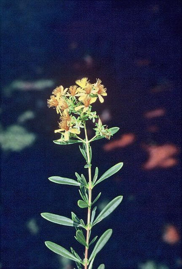 This Hypericum is a dense twiggy shrub with small dark green narrow leaves and golden yellow flower clusters from summer to fall. It is stoloniferous so spreads to form colonies. It is native to southeastern U.S. mostly on moist, or even boggy soil but sometimes on quite dry sites.