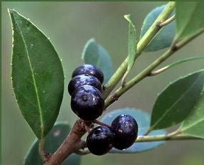 Large Gallberry is a tall evergreen shrub found in wet acid soils in the Southeastern U.S. Coastal Plain where it often occurs with the related Inkberry Holly (Ilex glabra). It is usually a larger plant with larger and broader leaves and slightly larger black or purple berries (on female plants). It is seldom seen in cultivation but can be grown in the average southern garden if mulched and kept watered.
