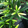 • Appearance: The foliage consists of narrow, lance-shaped leaves with a leathery texture. The leaves are deep green, glossy, and grow densely along the branches, giving the plant a refined, elegant look.