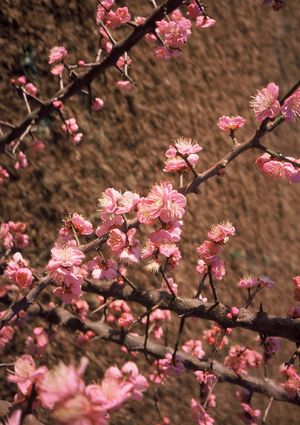 Prunus mume, also called Japanese Flowering Apricot, is a compact tree with almond-scented blooms. Flowers range from soft white to deep pink and appear in mid to late winter across southern regions.