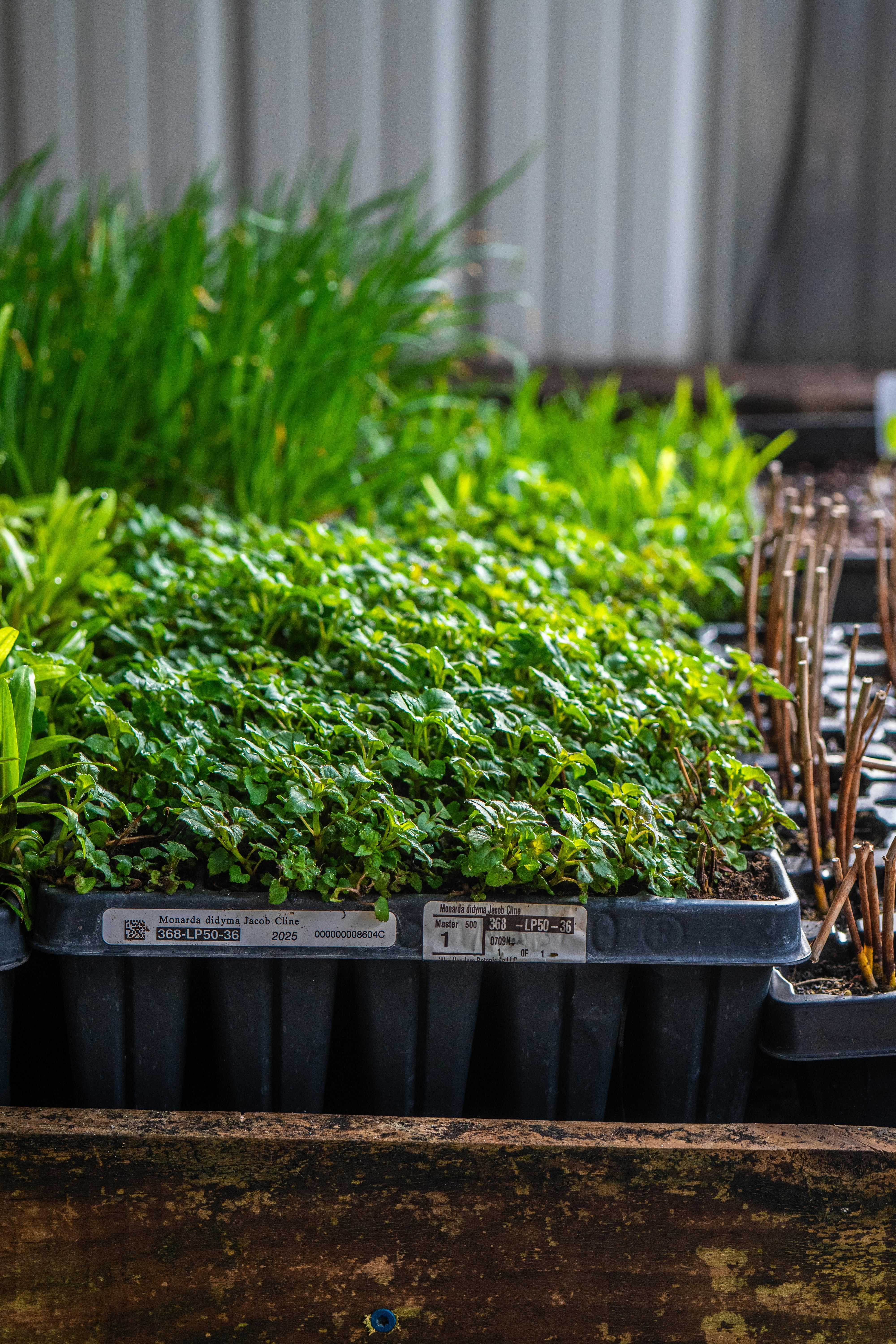 This beloved mildew-resistant bee balm cultivar sends up vivid red blooms that flare through the summer garden like small bursts of fireworks. Monarda ‘Jacob Cline’ is especially prized by hummingbirds, though bees and butterflies are equally eager to join the show. Bright, upright, and full of energy, it brings movement and color at the height of the season.